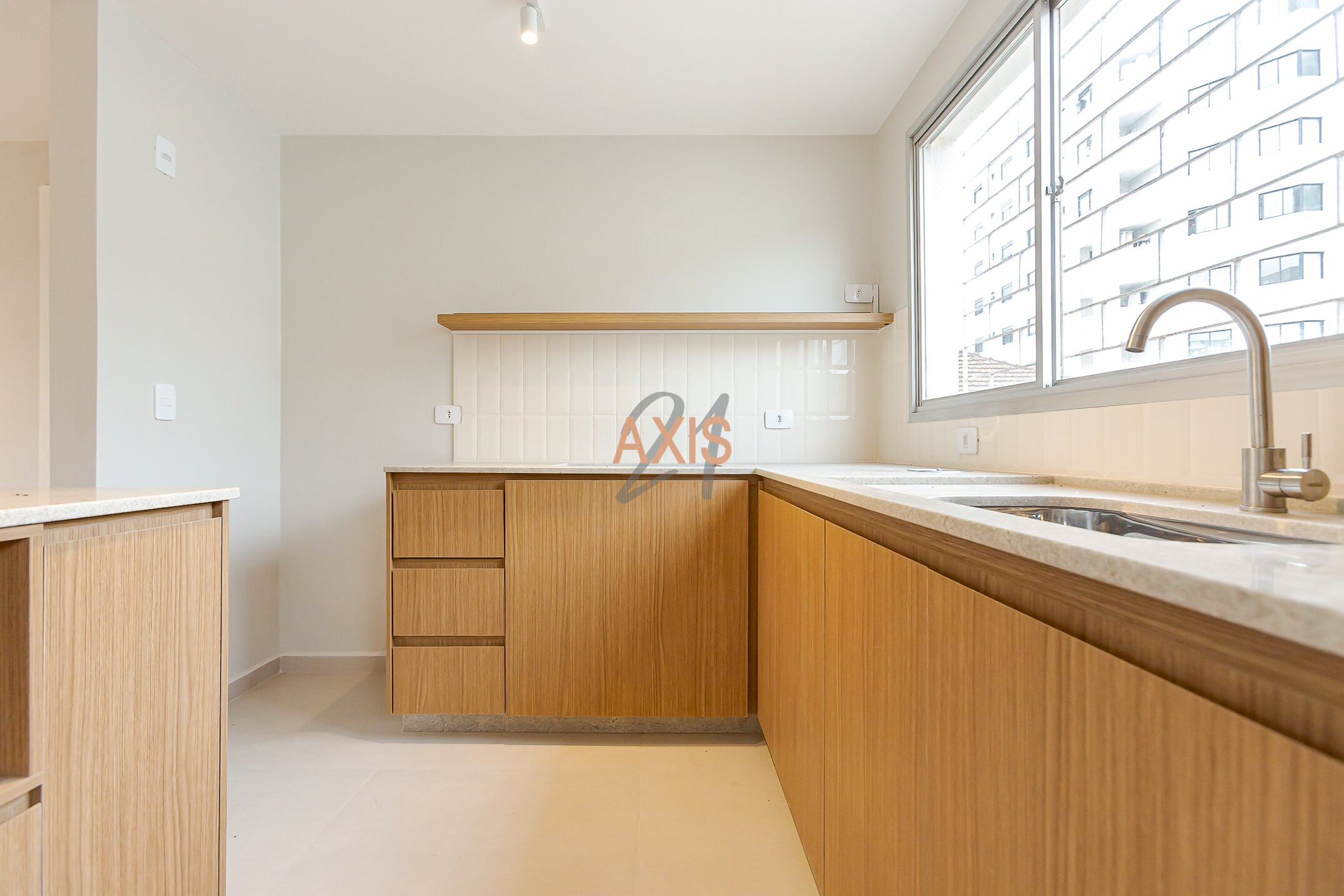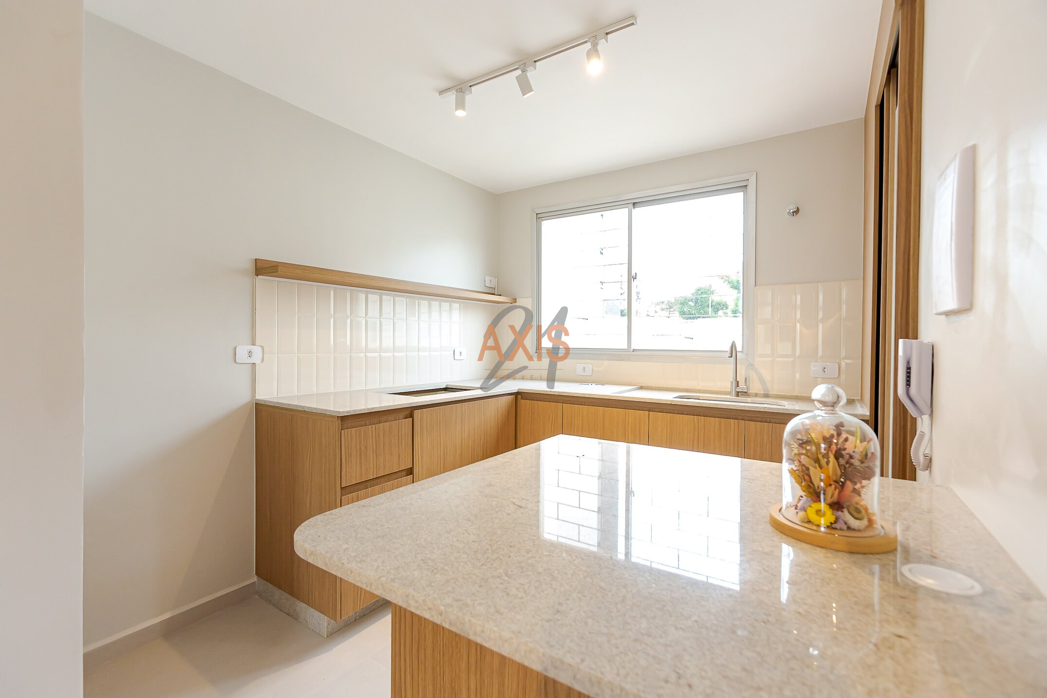 A cozinha é um dos grandes destaques, charmosa, novinha e com marcenaria fixa de excelente acabamento, oferecendo um espaço aconchegante e funcional para o dia a dia.