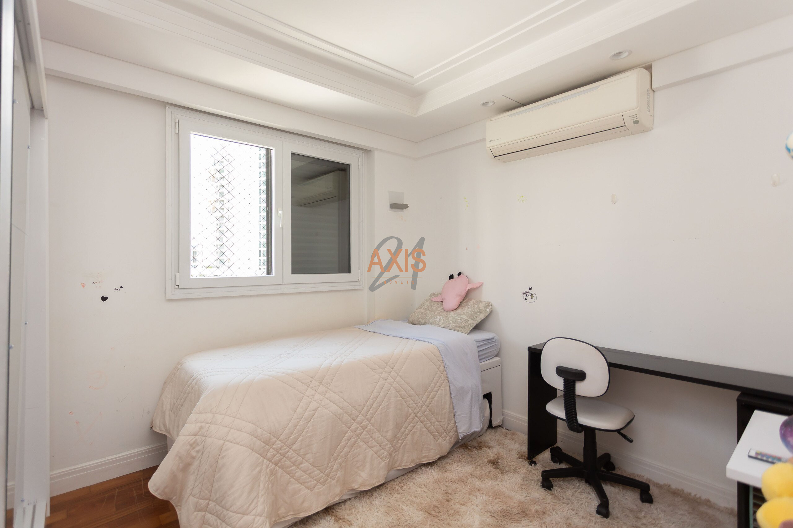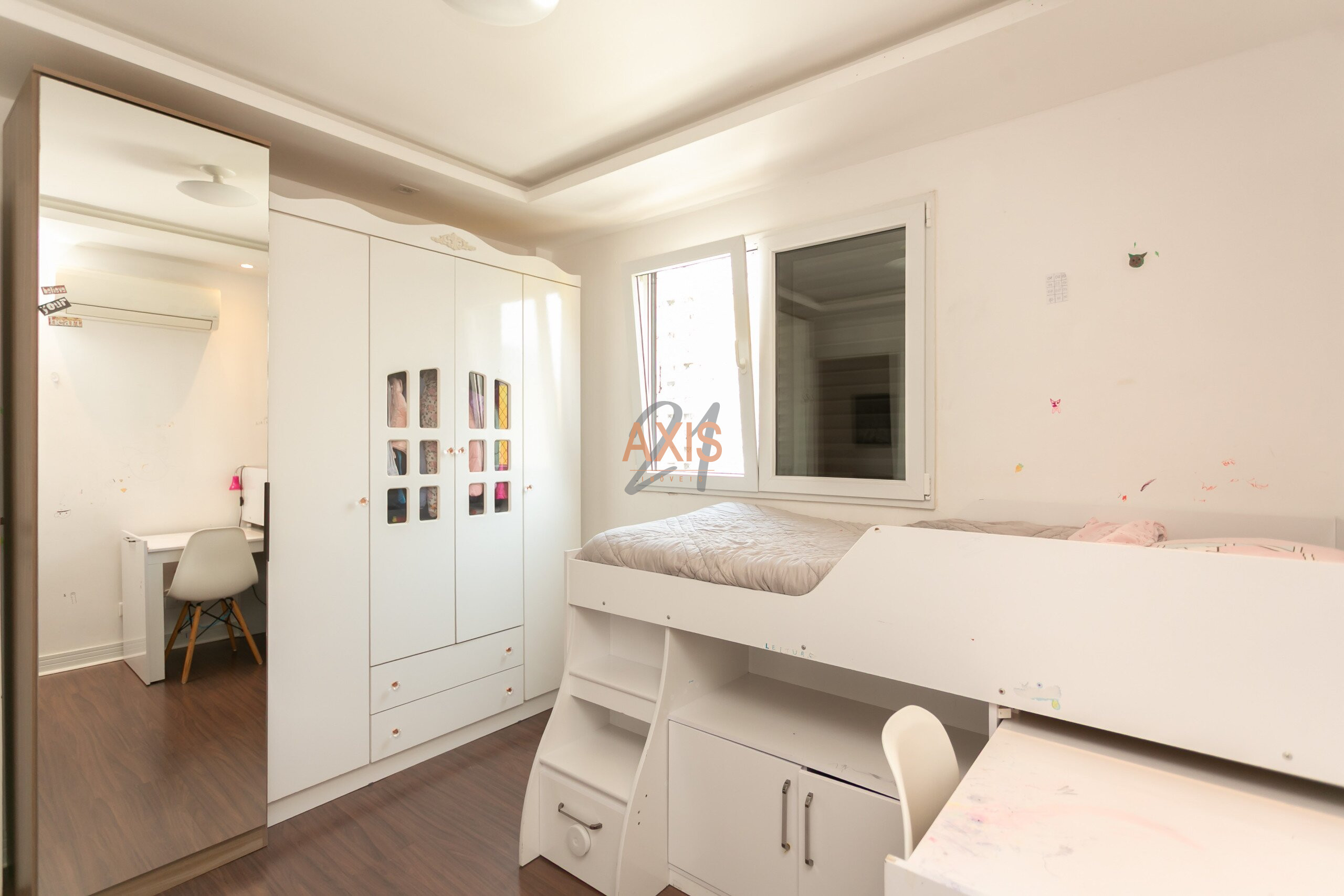 Com 108 m² privativos, o apartamento conta com três quartos, duas vagas de garagem e ambientes muito bem iluminados, com excelente incidência de sol ao longo do dia. As esquadrias antirruído garantem conforto acústico e tranquilidade, tornando o espaço ainda mais agradável para morar.