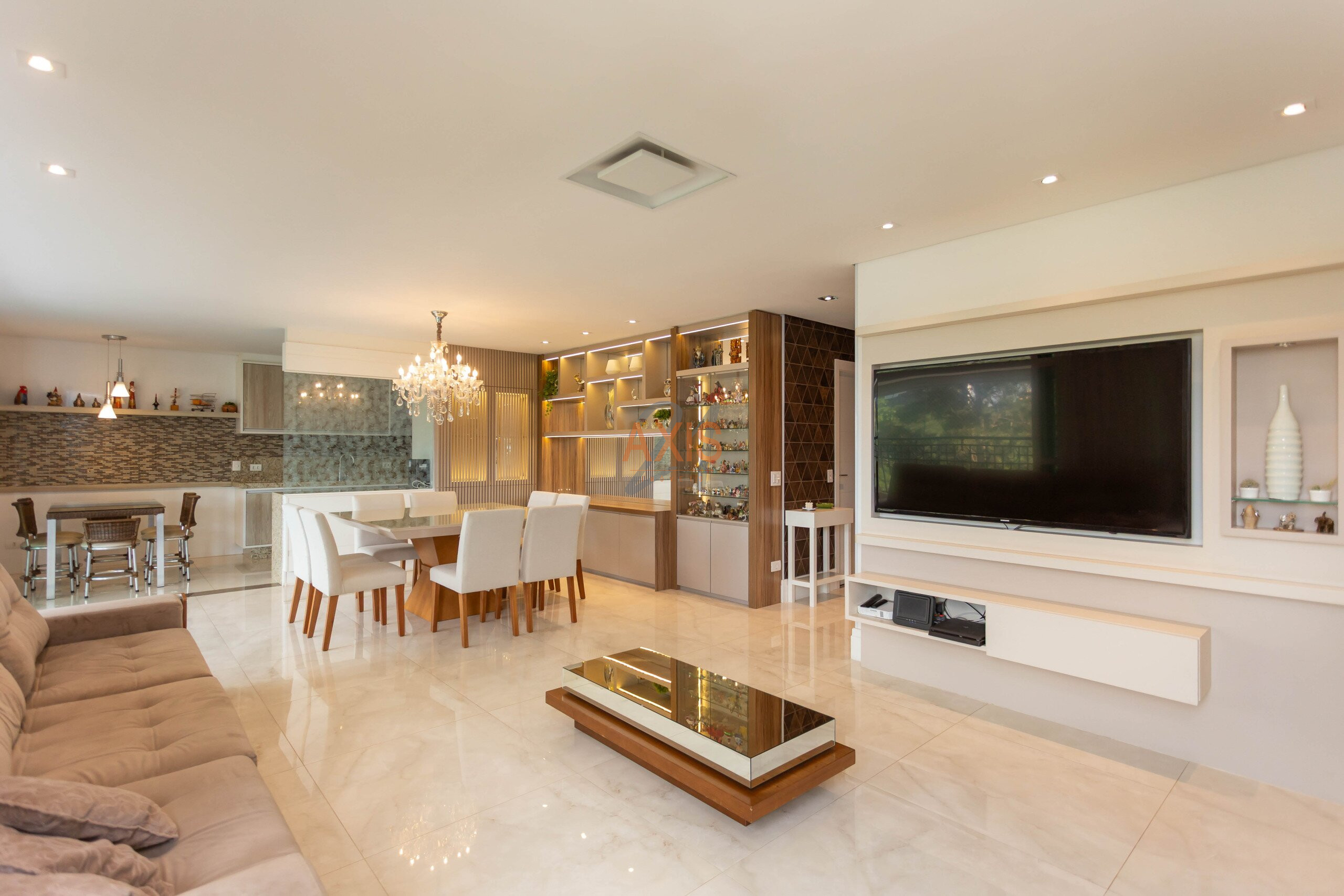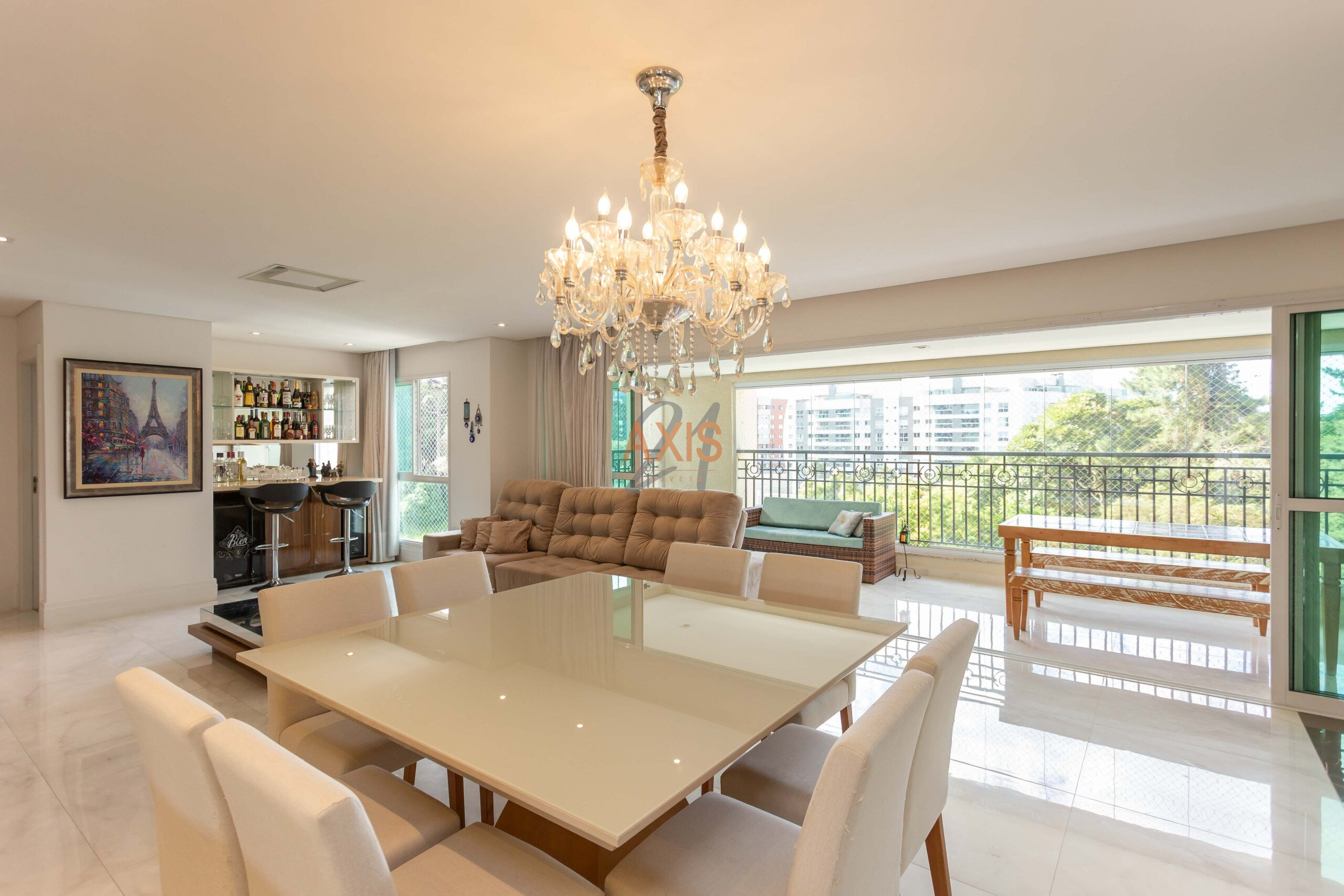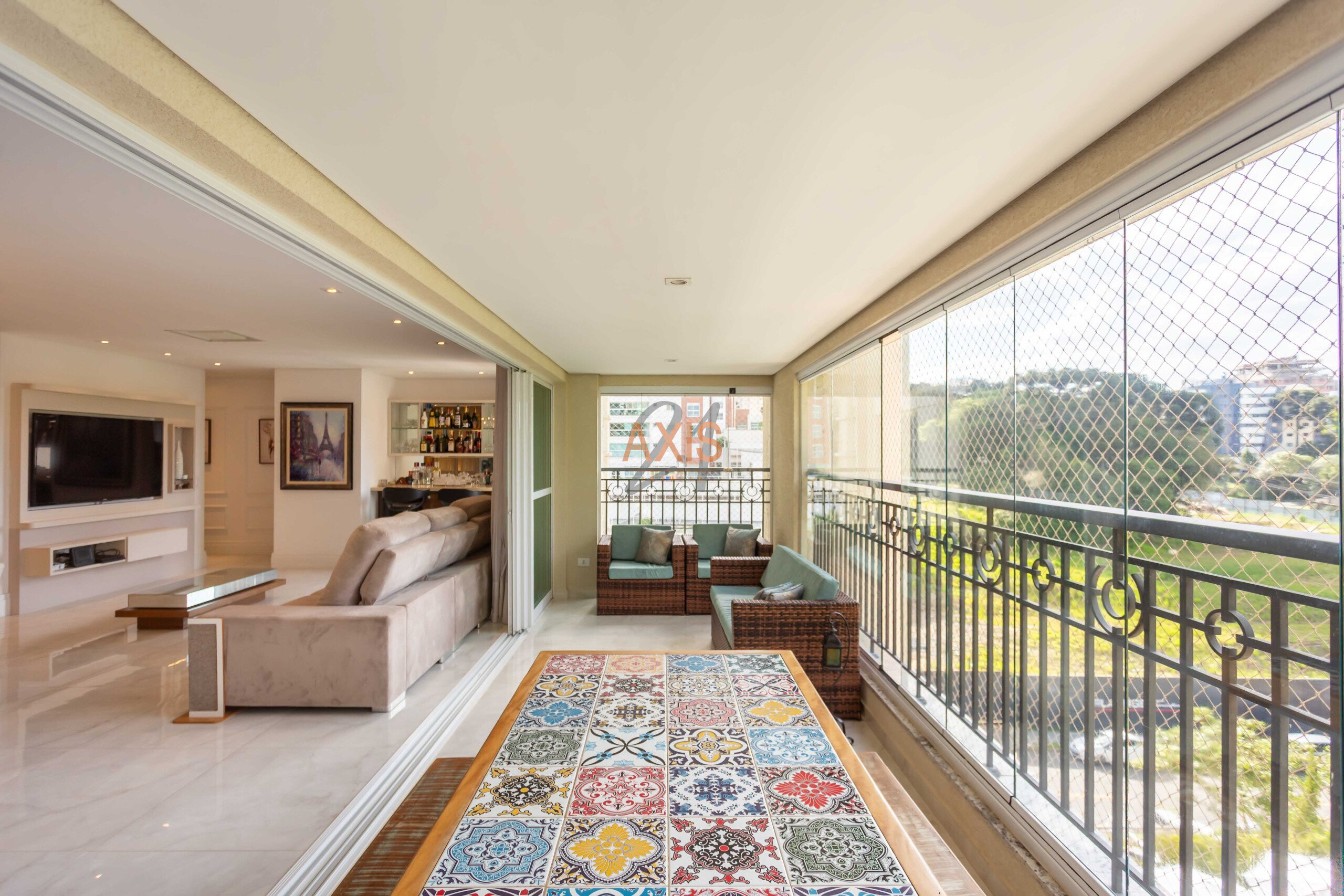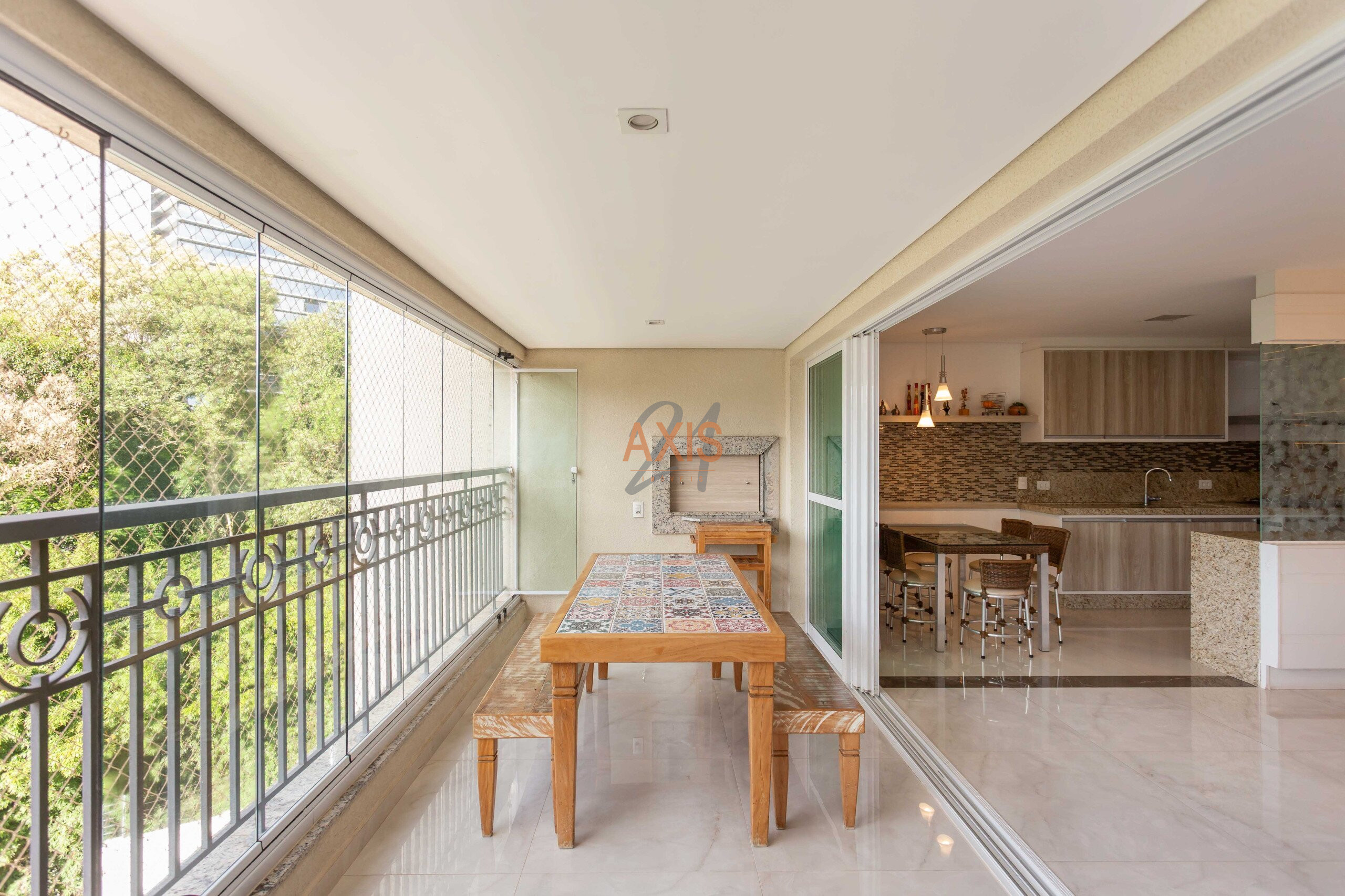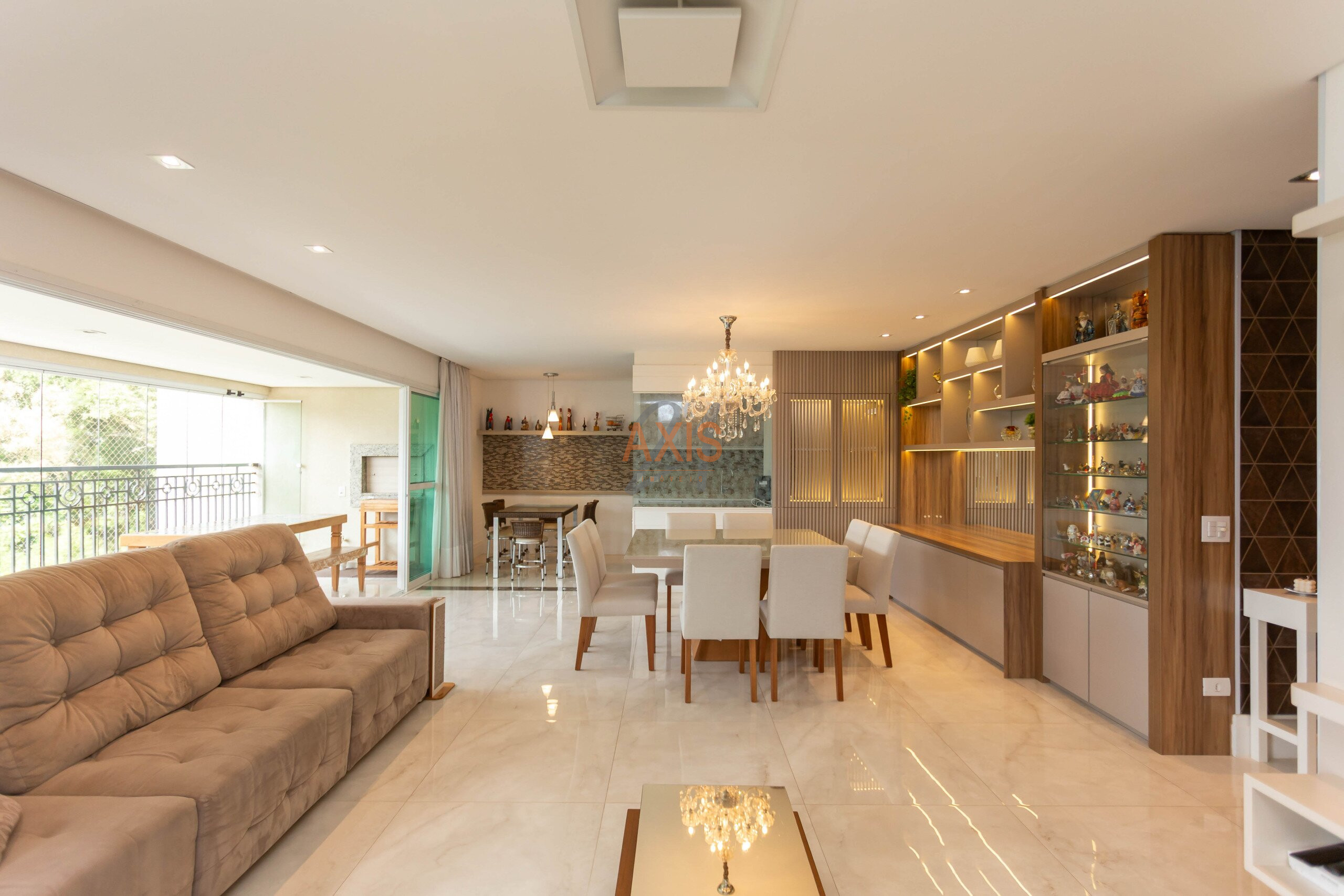 - Sala integrada à sacada com churrasqueira