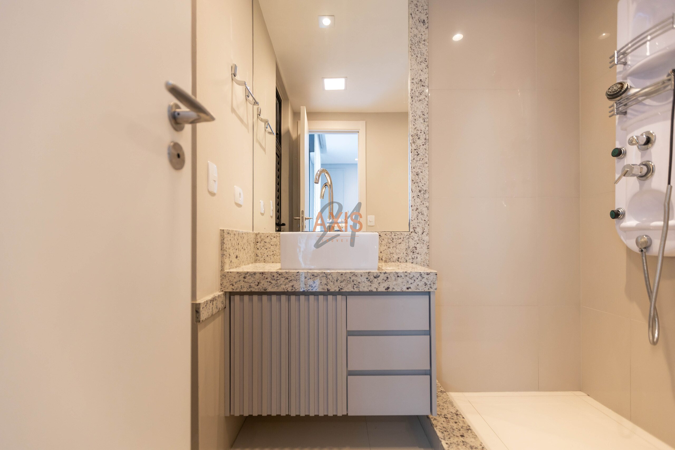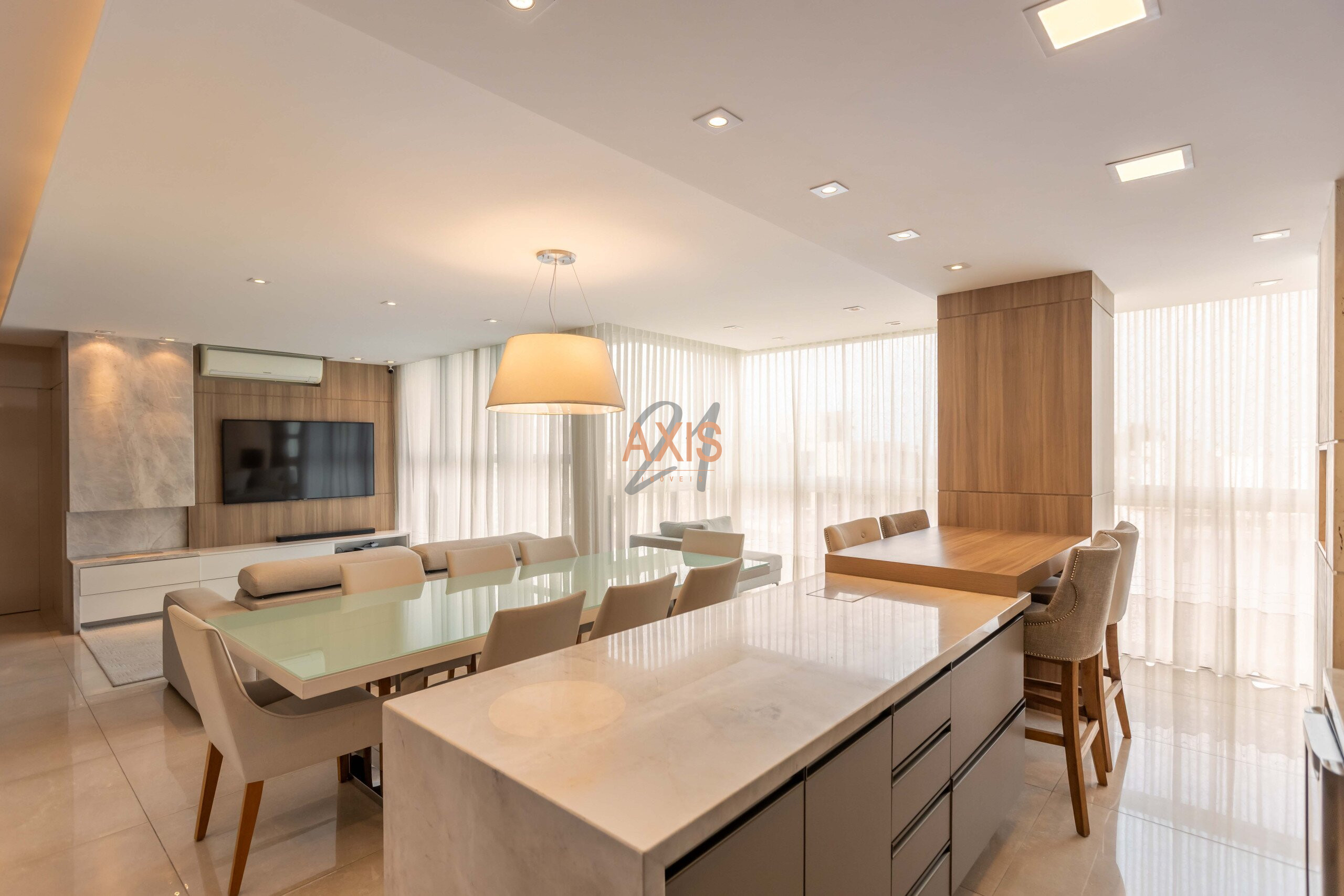 Em andar alto, o apartamento recebe muita luz natural e oferece ambientes amplos e integrados. A varanda se conecta harmoniosamente com os espaços internos, proporcionando ainda mais amplitude e praticidade no dia a dia. São três suítes confortáveis, todas com persianas automatizadas, além de lavabo, lavanderia e churrasqueira a carvão, que valorizam a funcionalidade do projeto.